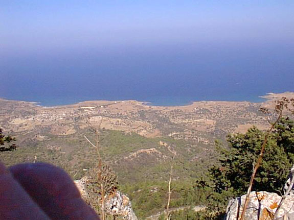 The two semicircular bays, the west (left) one called "Pachinas" and the east (right) one called "Amalia" can be seen.
